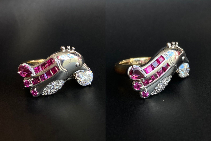 とても複雑なデザインでしたが日常使いしやすいよう、引っ掛かりにくさや 高さが出ないように配慮しつつ、最高に美しい仕上がりとなりました。