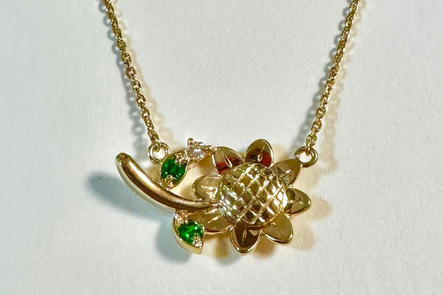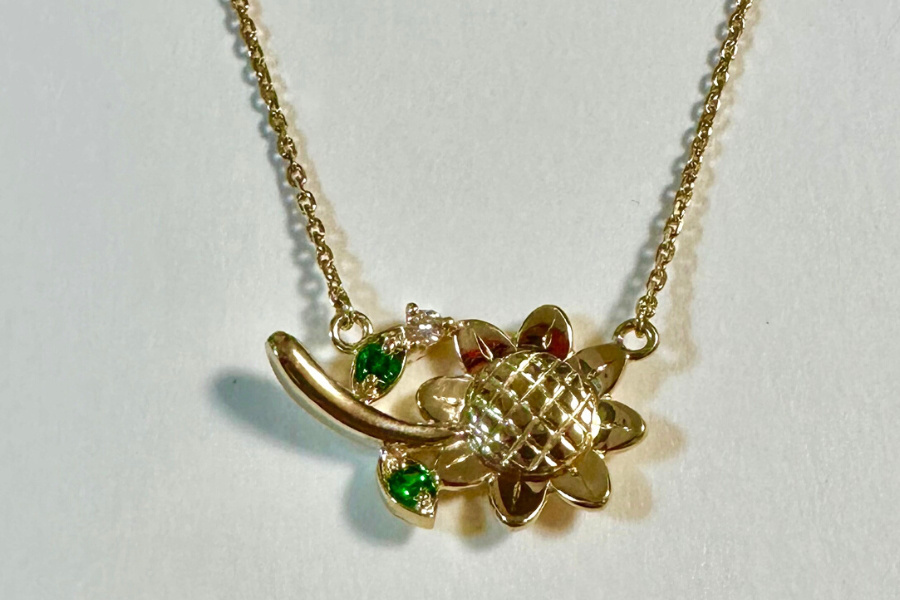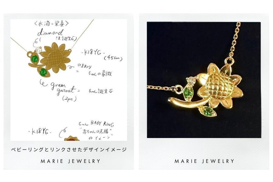 単なるひまわりのネックレスというだけではなく、仲良しT様ファミリーの象徴のような、そしてこれからの人生のお守りのようにも感じられる唯一無二のネックレスを制作したかったので、デザインに詰め込みました。