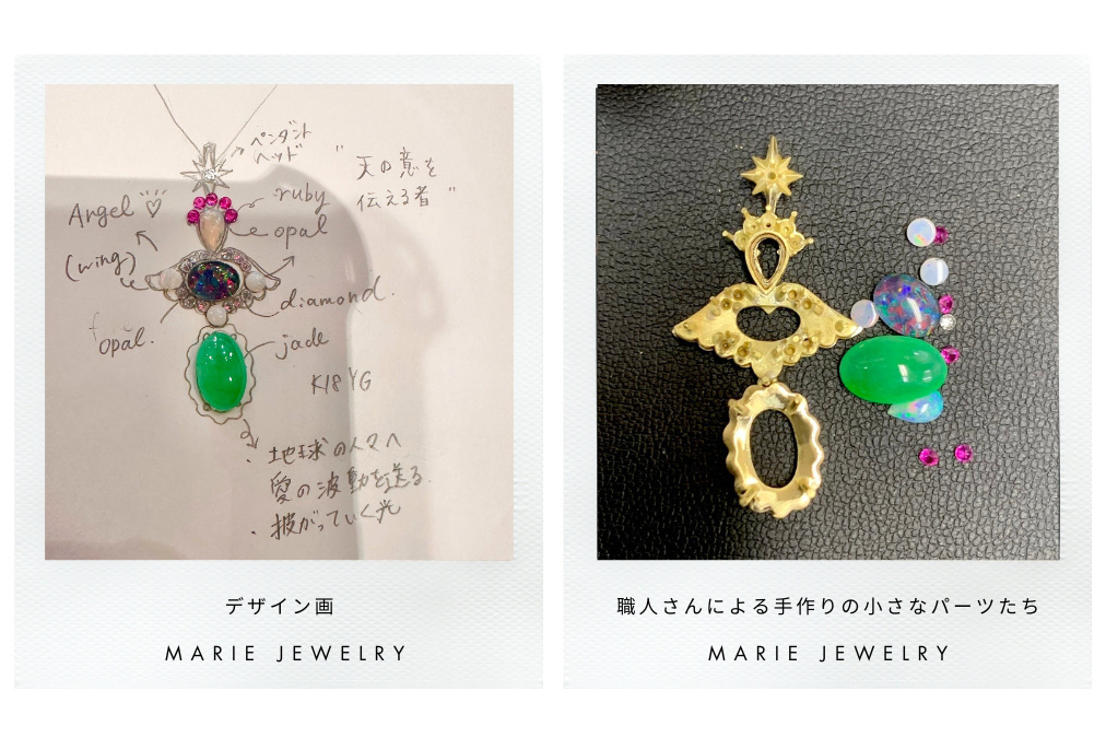 デザインはすべてお任せいただき、Yasuko様のインスピレーションから 形やキーワードが浮かび上がり、デザイン画が少しずつ形になっていきます。